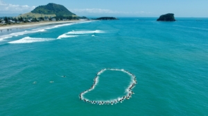 A paddle out to share our aroha and as a sign of respect from surfers all across Aotearoa to the locals here in Mount Maunganui and those affected by the recent tragedy at Mauao.