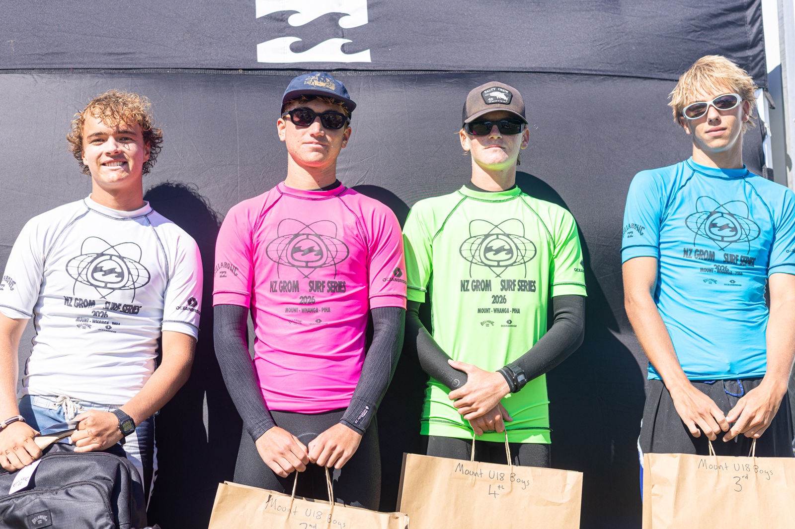 There were first-time event winners amongst those going back-to-back from the Nationals and two returns to the winners circle for others at the first event of the Billabong Grom Series presented by Oceanbridge completed at Mount Maunganui today.