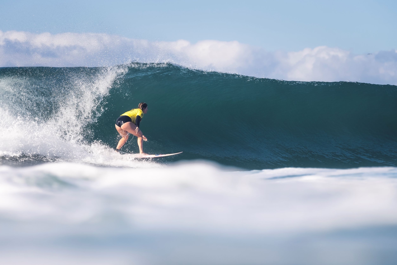 With momentum building and challenging conditions Tash knew it was anyone’s game, it would come down to being in the right position when a set came through in the 1.0m to 1.5m sea breezy conditions. Had it been any other wave starved heat Tash would have breezed through with a 4.3 and a 3.3 but an unexpected and short-lived pulse halfway through the heat meant a flurry of scores in the four to six range were put on the board.
