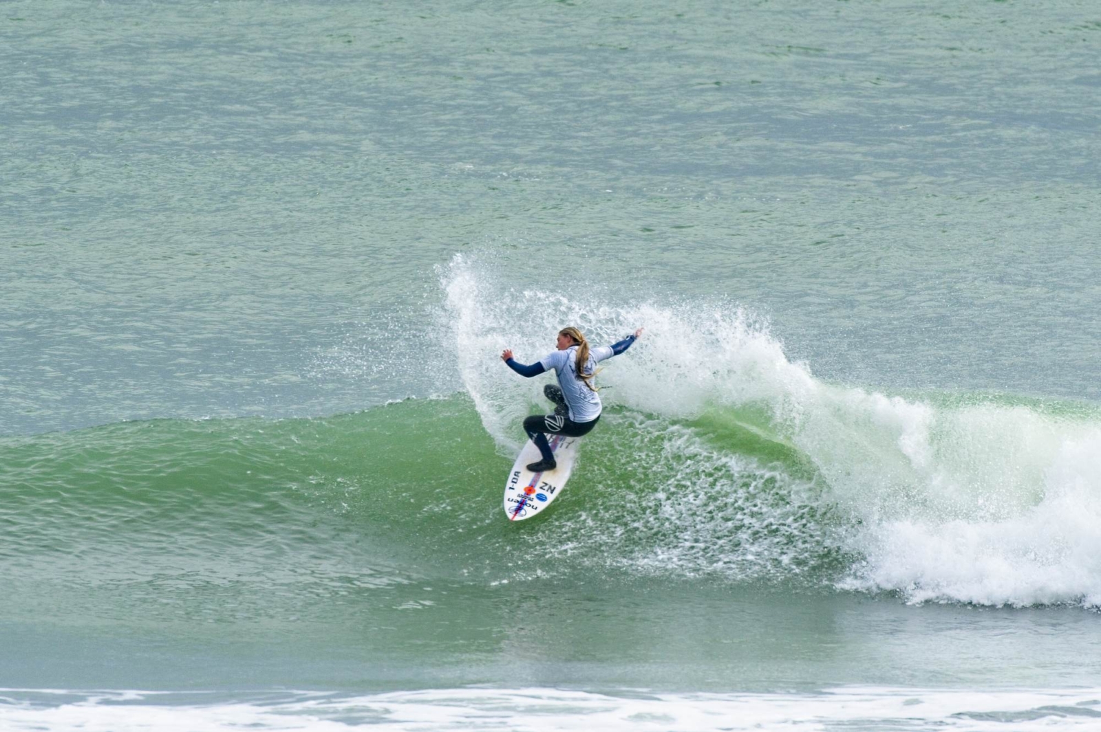 After the Men’s and Women’s Divisions were completed at Manu Bay on Saturday, and won by Billy Stairmand and Ella Williams, a change in venue was required for the final day of the event with the backup location of Ruapuke Beach proving fruitful for the best Kiwi juniors in the country.  A clean 1.0m swell and offshore winds prevailed all day producing groomed waves that held throughout the tides.